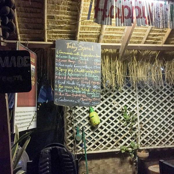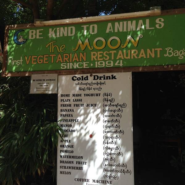The Moon Vegetarian Restaurant是家花园般的餐厅,就在阿难陀寺塔的北边,风景很好,这里也是西方游客集中的地方。这是家素食餐厅,菠萝、椰子咖喱都是很棒的食物。
