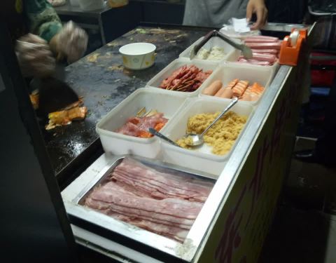 这种烤冷面的小摊位也非常多 看着人气蛮旺的 就去买一份吃吃看 料可以根据个人的喜好 添加 我们加了份培根 烤冷面里本来就会加一个鸡蛋的哟 看着烤冷面新鲜出炉的 有番茄酱大味道诶 貌似没有我在青岛的时候好吃这种烤冷面的小摊位也非常多 看着人气蛮旺的 就去买一份吃吃看 料可以根据个人的喜好 添加 我们加了份培根 烤冷面里本来就会加一个鸡蛋的哟 看着烤冷面新鲜出炉的 有番茄酱大味道诶 貌似没有我在青岛的时候好吃
