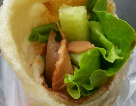 这种烤冷面的小摊位也非常多 看着人气蛮旺的 就去买一份吃吃看 料可以根据个人的喜好 添加 我们...