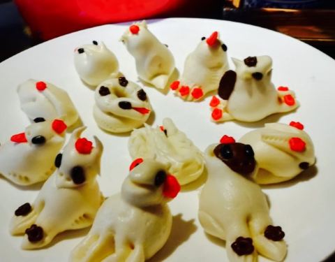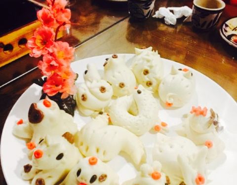 在三舍公馆的老宅里吃饭,真有不同的感受。老宅曲径通幽,曲曲折折,回廊庭院,精致典雅。 有包间,有庭院圆桌,还有三间的老屋可以用餐,坐在民国时期的老宅里,品古韵犹存的陕菜大餐,十二生肖花馍 可爱到不舍得吃,粗犷的陕菜摇身一变 精致玲珑。