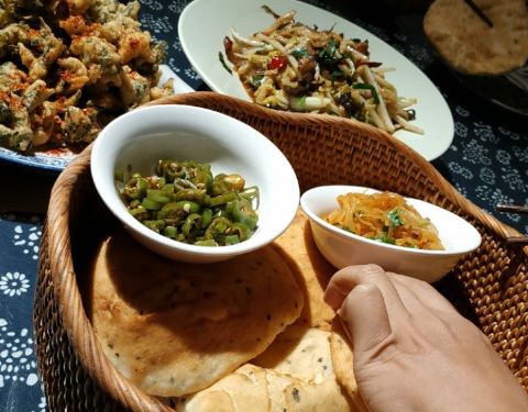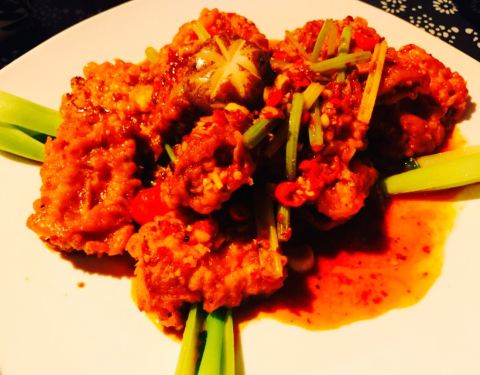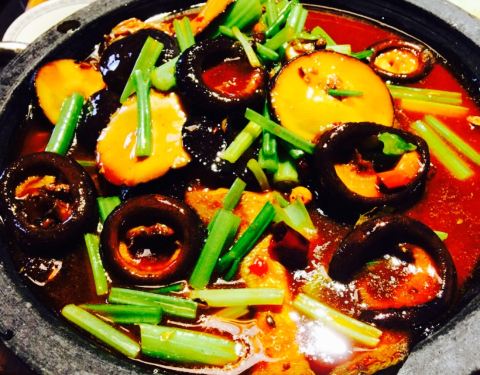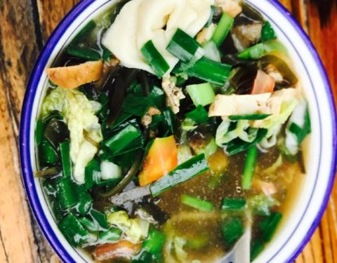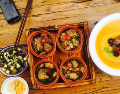 一家特别开心的店,全五星。环境不必说了,就在古城边儿,类似于四合院,有吃有住非常舒服。整个院子保留了古感,配上各色花花草草和好味的吃食,加分。或许是因为菜点的成功,吃下来个人很满意。十二生肖,韩城当地的花馍,做成小动物的样子很可爱,一份也不贵,算是传统文化的传承体现。打鼓豆腐,这道菜造型满分,口味就比较一般了。辣味鱼的口感,里面有酥肉豆腐蘑菇一类的,都是我不开心的垫菜。韩城小炒,很合口味的一道菜,韭菜粉条白菜肉丝豆干炒在一起,不错吃。搅团,这家的搅团很美味啊。是粉粉糯糯的口感,很细滑,上面撒了西红柿和辣椒碎,油泼辣子很香,十分推荐。椒盐花椒芽,韩城最出名的就是花椒了吧,细嫩的花椒芽炸的酥脆撒上辣椒粉等,开心。老陕烩三鲜,陕菜届的扛把子,汤蛮鲜的橡皮青菜丸子的搭配百吃不腻,唯一不开心的是油味有点重,但这道菜菜量很大,人少慎点。总的来说,来韩城非常推荐来这家吃。