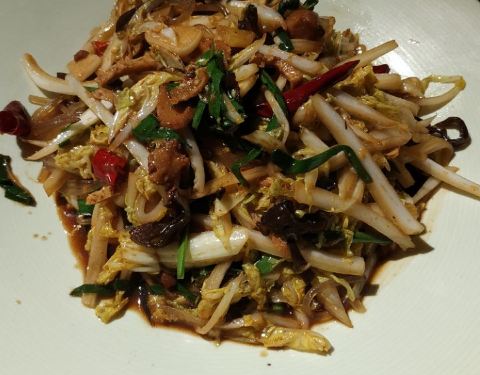 菜品一般般,卖的是情怀。就在古城旁边一个老院落里,环境很好,古香古色,不过北京这样的地方好多,冲着陕西菜来的,菜品一般般吧,其实正宗陕西菜很少,都是江湖菜。四个拼一起的忘了叫什么,只有一个还行,其他三样真不怎么样,觉得就是一团团面糊。有个小米青菜,据说用骨汤吊出来的还不错。居然最美味的是麻辣踅面,正宗应该是合阳的,只是我很开心,趁热吃拌上辣椒香喷喷。饭点也没有什么人,不用排号,小院里就我们两人,旁边站了五六个服务员盯着你用餐的样子真是不太过瘾,另外苍蝇太多了,很影响食欲。