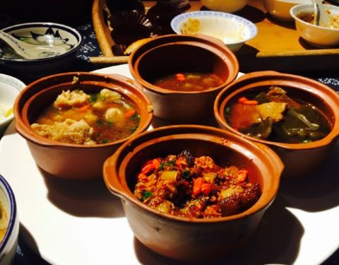 地段不错,城隍庙旁边,本身就是一个有历史的地方。晚上去的,门面不是很气派的那种,就是一个古色古香的门口,里面全是老房子装修的,现在这种风格的餐馆还真不少,上海也有不少小洋房改成的餐饮店,象1088。门不大,门槛是个放倒的板凳,据说白天当板凳坐,晚上坐的那面朝外,就是门槛。朋友订了一个包间,没人领确实有些难找,弯弯曲曲的小路走了一阵。点了不少韩城特色小吃。让我开眼界的是韩城馄饨,三种颜色的抄手,绿的是菠菜,黄的是玉米,还有白的,不大的实心馄饨,配了很多菜,有肉,豆腐干丝,韭菜,豆腐,木耳,配了糖蒜,海藻,但感觉味道一般,还是喜欢菜肉大馄饨,或者鲜肉小馄饨,从小的口味就是这样。葱油饼咸淡刚好,就是有些偏硬,油馍里面有些花椒味,韩城是著名的花椒产地。4个蒸碗感觉一般,裹的面粉很厚,陕西这种菜都大同小异。青菜小米粥很不错,就是偏咸。但是罐子的造型不错,古色古香。服务生很热心,主动介绍菜品,介绍吃法,也随叫随到。