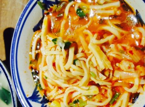 是粉粉糯糯的口感,很细滑,上面撒了西红柿和辣椒碎,油泼辣子很香,十分推荐。一家特别开心的店,全五星
