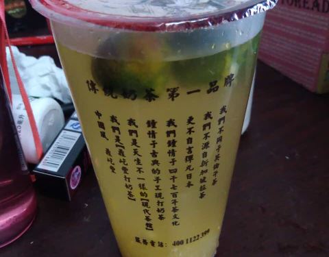 原味奶茶是事先煮好的,一大桶,有客人点餐后店里的小伙儿会用竹制的舀子从桶里舀出奶茶倒进杯子里,然后依客人要求加料后封口,很快很快就做好一杯奶茶!味道还不错的,有点融合了台式奶茶和港式奶茶的味道,微...原味奶茶是事先煮好的,一大桶,有客人点餐后店里的小伙儿会用竹制的舀子从桶里舀出奶茶倒进杯子里,然后依客人要求加料后封口,很快很快就做好一杯奶茶!味道还不错的,有点融合了台式奶茶和港式奶茶的味道,微苦带甜,我还挺喜欢这个味道的^_^ 而且价格好便宜啊!一大杯主要5块钱!5块钱你买不了吃亏也买不了上当,走过路过可以买一杯尝尝哟^_^