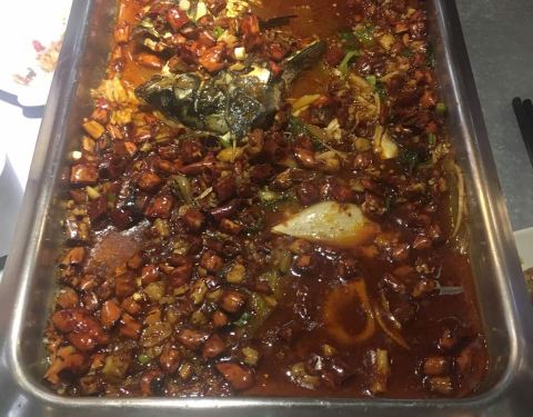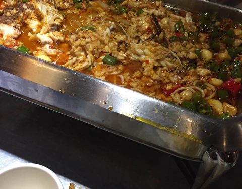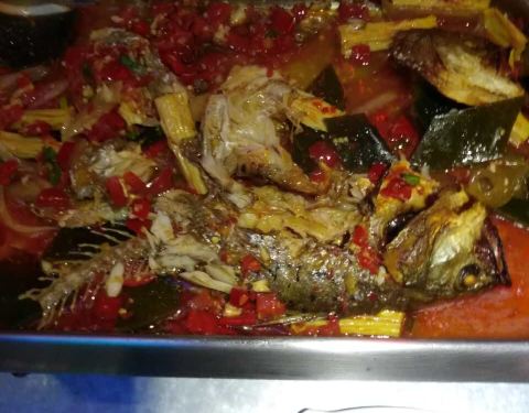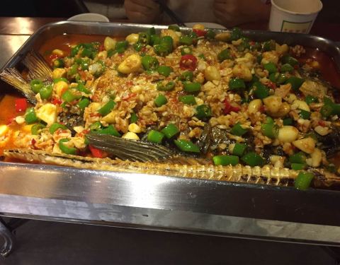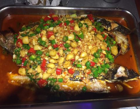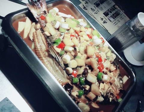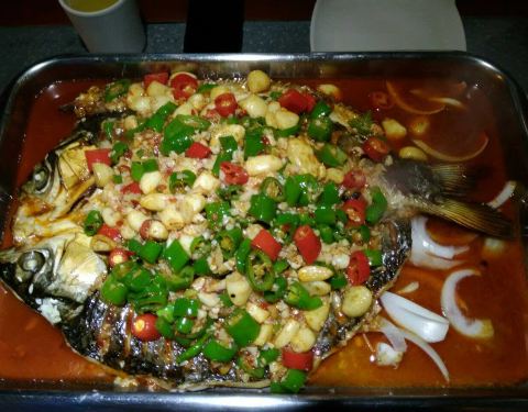 这家店店里的烤鱼味道很好,点的剁椒味的,推荐,酸梅汤也很赞,力荐!!!