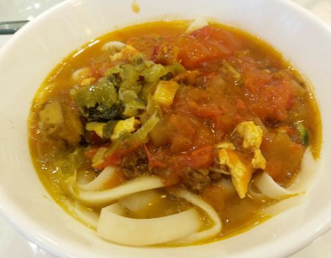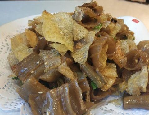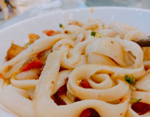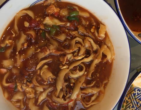 火车站附近的餐厅,人超级多,可能是团队客户,有些嘈杂。 也接待散客,点了过油肉和刀削面。 过油肉就是里脊肉和木耳,玉兰片一起炒制的,很香很嫩,吃口不错,算是山西名菜之一了。 刀削面,先上来面条,劲道,浇头自己加的,番茄蛋,酸菜等等,味道可以。