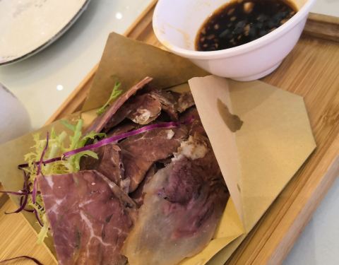 ...宝去的,孩子最喜欢卤牛肉,点了网友推荐,上车饺子,三鲜的,不太好吃,感觉像包子馅,东坡肉很好看