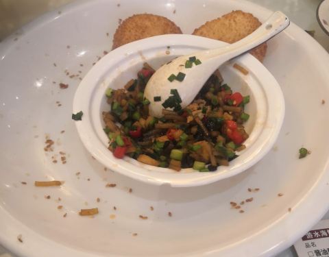 好像是旅游团的定点餐厅,饭点儿有许多大巴车旅游团来吃团餐,大厅比较大,吃了本地著名的过油肉,口味很正