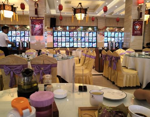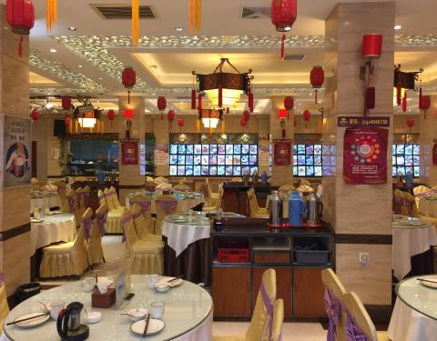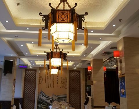 火车站边,地理优越,而且没有因为流动人口多就变成不要回头客的黑心餐馆。餐厅门脸大气,大厅敞亮,就餐环境舒适,好像是旅游团的定点餐厅,饭点儿有许多大巴车旅游团来吃团餐,大厅比较大,吃了本地著名的过油肉,口味很正。