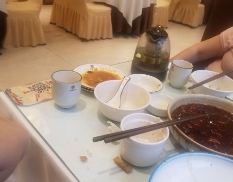 中餐晚餐并在一起吃了,杯盘狼藉了🤭这里菜品的味道还是不错的🏢,而且就在火车站附近🚉,非常方便。基本杯盘狼藉😝