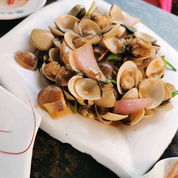 海边附近,海鲜很实惠,鱼虾贝壳品种很多,价格也不贵,晚上还有唱歌的,吃点烧烤 海鲜。喝点酒特别不错,满意百分百