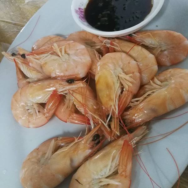 - 首先要推荐的还是我的最爱,就是新鲜的白灼虾了,我吃了好多,虾肉很新鲜,直接白灼就足够鲜美了