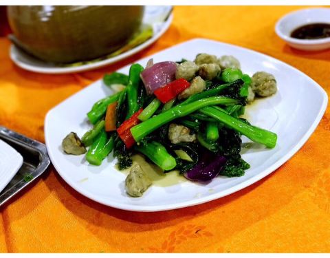 - 菜心炒鲮鱼球,菜心甜甜的爽滑,鲮鱼球就是粤菜的口味!这家歺厅性价比非常高。佛山之肥妹饭堂