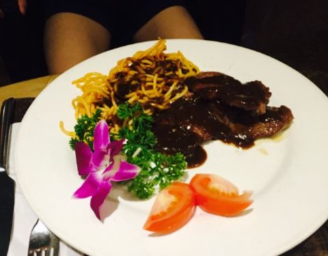 黑椒牛排挺不错的,量多,吃得很饱。服务态度也挺好的,因为带了两个小孩子,一时要这个要那个,服务生也及时。刚来的时候,还在等人,服务生挺有耐心地介绍,和建议小朋友吃的套餐,尽管是第一次去那边吃大菜,但相比其它而言挺不错的了。