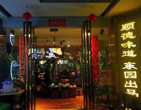 店家在赤岗“四季天地”首层,位置比较偏里面,如果不是有推荐很难找到这里来吃饭。店铺装修还是不错的,古香古色,就是感觉空间不够大,人员穿梭走动很容易就碰到。 店里菜式以“顺德菜”为主,一进门就有“顺德...店家在赤岗“四季天地”首层,位置比较偏里面,如果不是有推荐很难找到这里来吃饭。店铺装修还是不错的,古香古色,就是感觉空间不够大,人员穿梭走动很容易就碰到。 店里菜式以“顺德菜”为主,一进门就有“顺德味道”的招牌,在我的印象中顺德菜一般以吃鱼为主,这里也不例外,门口竖着招牌介绍的菜式系“|顺德鱼塘公焖海鲩鱼^”,还有“|盐炊连山土鸡^”,霸王餐也是一道“|大锅生焖瘦身鲩^”和一煲“|沙姜焗鸡^”,此外还有一份顺德著名小吃“|大良炸牛奶^”。坐下后,服务员手脚麻利地摆设好炉具,接着端上一大锅鲜汤浸鲩鱼,点火开焖!说是瘦身鲩,但一大条足有三四斤,够三四个人吃了!汤里有番茄、白贝、鲜虾,焖出好味道,非常鲜美!略有不足的是鲩鱼比较多刺,吃得不够畅快。另一道菜“|沙姜焗鸡^”就非常赞!沙姜铺底,再放上鸡块、芹菜,盖上锅盖计时焗7分钟,当时钟响起,揭开锅盖,一股浓香扑鼻而来,正啊!鸡肉鲜嫩,味道浓郁,好一煲“|沙姜焗鸡^”!“|大良炸牛奶^”系著名的顺德美食,这里出品也是不错。总体觉得这里的出品不错,可以吃到比较正宗的顺德美食,以后有机会可以再来~