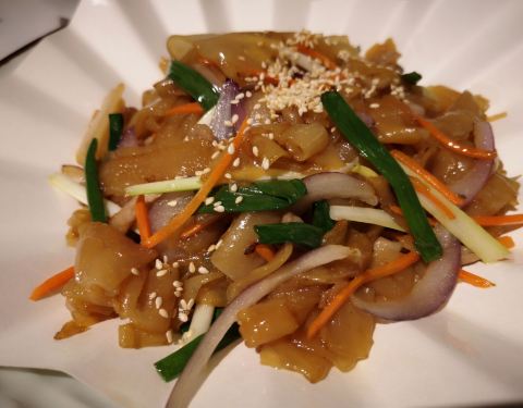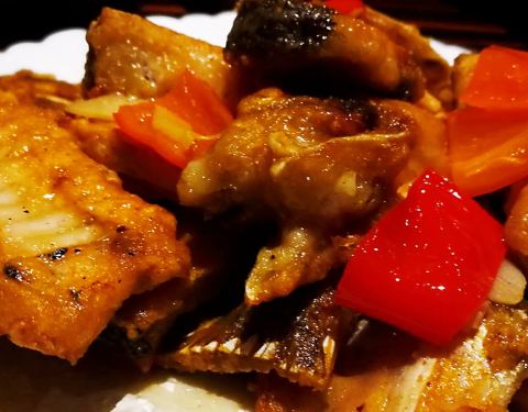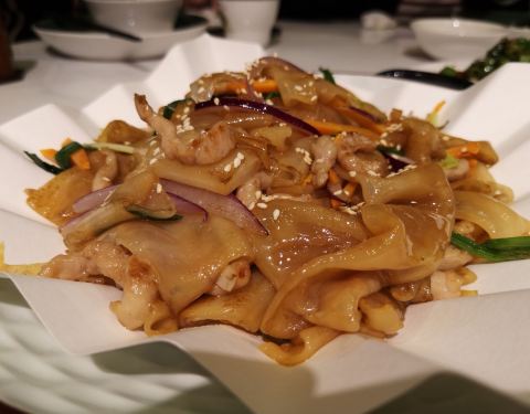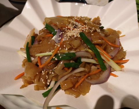 无骨鲫鱼,豉汁的蒸法,无骨鱼的切法。适合老人和小孩食用。分量不是很多,味道不错,有点吃不过瘾。炒豆角,用来捞饭不错,有点咸。炒陈村粉,味道好,不错。