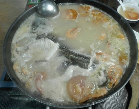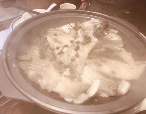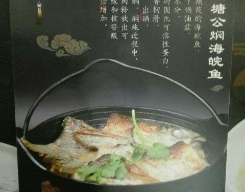 店家在赤岗“四季天地”首层,位置比较偏里面,如果不是有推荐很难找到这里来吃饭。店铺装修还是不错的,古香古色,就是感觉空间不够大,人员穿梭走动很容易就碰到。 店里菜式以“顺德菜”为主,一进门就有“顺德味道”的招牌,在我的印象中顺德菜一般以吃鱼为主,这里也不例外,门口竖着招牌介绍的菜式系“|顺德鱼塘公焖海鲩鱼^”,还有“|盐炊连山土鸡^”,霸王餐也是一道“|大锅生焖瘦身鲩^”和一煲“|沙姜焗鸡^”,此外还有一份顺德著名小吃“|大良炸牛奶^”。坐下后,服务员手脚麻利地摆设好炉具,接着端上一大锅鲜汤浸鲩鱼,点火开焖!说是瘦身鲩,但一大条足有三四斤,够三四个人吃了!汤里有番茄、白贝、鲜虾,焖出好味道,非常鲜美!略有不足的是鲩鱼比较多刺,吃得不够畅快。另一道菜“|沙姜焗鸡^”就非常赞!沙姜铺底,再放上鸡块、芹菜,盖上锅盖计时焗7分钟,当时钟响起,揭开锅盖,一股浓香扑鼻而来,正啊!鸡肉鲜嫩,味道浓郁,好一煲“|沙姜焗鸡^”!“|大良炸牛奶^”系著名的顺德美食,这里出品也是不错。总体觉得这里的出品不错,可以吃到比较正宗的顺德美食,以后有机会可以再来~