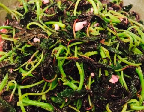 大厅还是那么旺,6点多就坐了好多台。盐焗乳鸽还是那样好味道。我们每人一只,姐妹们赞不绝口。真的好吃。炒藕尖 。嫩嫩的藕芽配野山椒炒,那个酸爽。小炒黄牛肉 。大蒜苗下饭绝对一流。清蒸则鱼鲜甜可口。唯一不满意就是点两个青菜都没有啊。