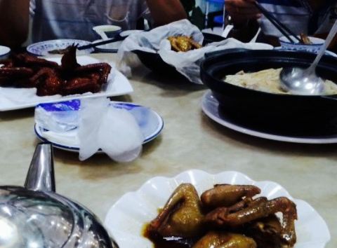 听同事介绍过,所以元宵节那晚一大家子(五大一小)去吃的,风味是鸽子做菜,点的菜都上图了,红烧鸽跟盐焗相比,更爱盐焗,莲藕汤很好喝,酸辣藕尖很好吃,鸽子饭很香,分量都不小,价位也挺实惠,最后网友攻略网买单两百多还有便宜,赞。连挑剔的爸妈也感觉不错,还会再去。