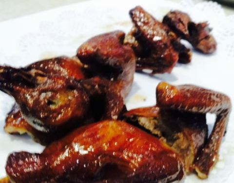 - 一进店这里就见到这里的乳鸽是招牌菜,我们两个人点了两只乳鸽,挺好吃的,皮有些脆,很爽口