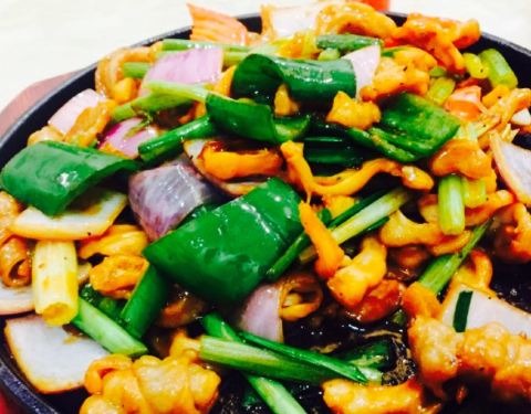- 真的好吃。大蒜苗下饭绝对一流。大厅还是那么旺,6点多就坐了好多台。唯一不满意就是点两个青菜都没有啊