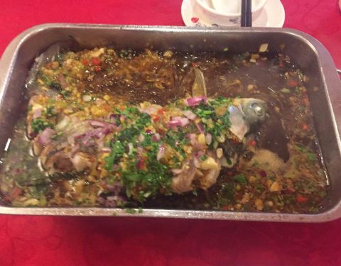 鱼有点咸,擂辣椒味道可以但还是有点咸,隔壁桌的人在抽烟没有人制止!!内部环境很喜庆,口味偏辣,这点很好