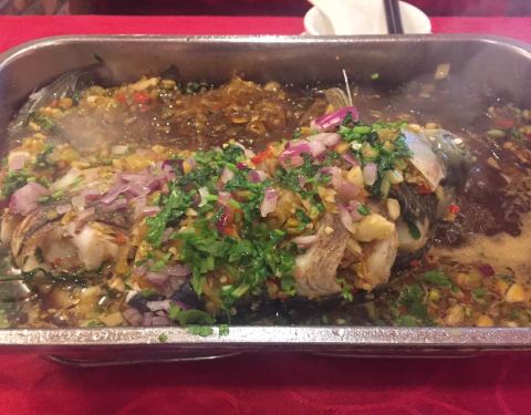 鱼有点咸,擂辣椒味道可以但还是有点咸,隔壁桌的人在抽烟没有人制止!内部环境很喜庆,口味偏辣,这点很好