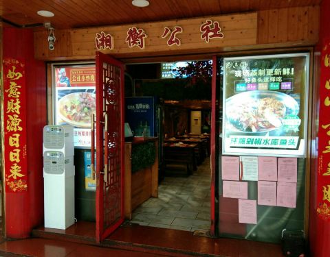 - 鱼有点咸,擂辣椒味道可以但还是有点咸,隔壁桌的人在抽烟没有人制止!内部环境很喜庆,口味偏辣,这点很好