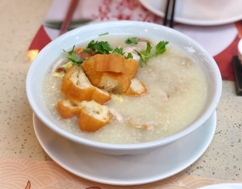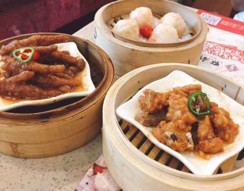 点都德(花城店) 花城大道16号(凯蓝大楼2楼) 久闻大名来试试广州的早茶。既然来吃早茶当然要点早茶,选的罗汉果,第一泡用于洗杯,味道带点甜甜的,不错,有一股清香。 上菜速度很快,每个小吃都对应一张单子,到了一样标记一下。简单介绍几个比较喜欢的: 荔湾艇仔粥 29元 料很足,鸡蛋丝、瘦肉、油条、鱿鱼、花生粒、猪皮好多东西组成的一大碗,吃的人很满足 金牌虾饺皇 31元 虾是真的很大只哦,而且这种没有上很多料的蒸货最能吃出新鲜与否,他家的材料真的都蛮给力的 传统手工炸蛋散 29元 上面淋着蜂蜜,咬一口很酥脆,嘎嘣响带着点甜味 香煎萝卜糕 19元 emm,就是萝卜糕的味道,咸咸的蘸着辣椒酱来吃,软软糯糯不错 特色蒸鲜排骨 31元 排骨很鲜香,不是吃进嘴里而是滑进嘴里的口感,一口一个 凤凰流沙包 23元 名字还挺好听的,料很足,轻轻一捏有点烫,掰开流出金黄色的馅料,光是看着就很满足 港式混酱蒸肠粉 23元 应该是唯一没有好评的小吃了,个人不是很感冒这个菜,味道感觉一般般没有很惊艳,皮也有点厚 总的来说这一餐吃的非常满足,两个人一共吃了185元,罗汉果至少喝了四壶味道还是很清甜,非常满足,会再打卡的那种。