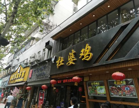 杜婆鸡位于万松园美食街雪松路37号,位置比较显眼