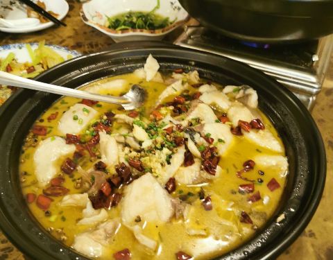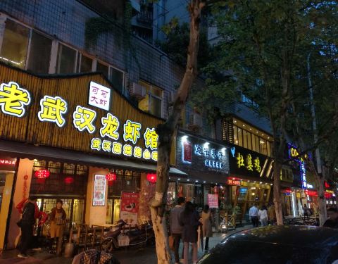 万松园店的杜婆鸡,相比于其他食店在晚饭时间尚算不用等位。同一时间路口两间巴厘龙虾已经要等位叫号了。杜婆鸡是湖北名菜,用十几种香料药材炆制而成。一百多元一煲三个人是绝对吃不完的。我吃了一只大腿,两三件鸡胸肉,满口麻辣了,尝不出鸡肉鲜味。排骨藕汤也是特产,料足,味浓,好喝。武昌鱼是扁鱼,小骨较多。肥肠重口味,偏咸。有二楼,可一览众食店。