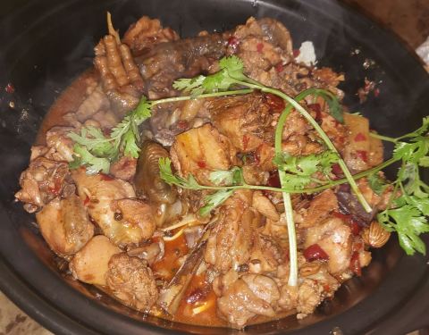 - 招牌菜,活鸡现杀现做现吃,肯定要品尝吧。味道真的不错,肉很嫰滑,不错。各种部件都全了,的确是一整只鸡