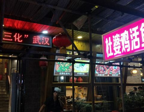万松园店的杜婆鸡,相比于其他食店在晚饭时间尚算不用等位。同一时间路口两间巴厘龙虾已经要等位叫号了。杜婆鸡是湖北名菜,用十几种香料药材炆制而成。一百多元一煲三个人是绝对吃不完的。我吃了一只大腿,两三...万松园店的杜婆鸡,相比于其他食店在晚饭时间尚算不用等位。同一时间路口两间巴厘龙虾已经要等位叫号了。杜婆鸡是湖北名菜,用十几种香料药材炆制而成。一百多元一煲三个人是绝对吃不完的。我吃了一只大腿,两三件鸡胸肉,满口麻辣了,尝不出鸡肉鲜味。排骨藕汤也是特产,料足,味浓,好喝。武昌鱼是扁鱼,小骨较多。肥肠重口味,偏咸。有二楼,可一览众食店。