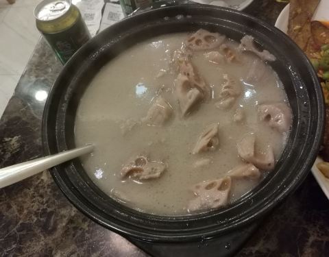 - 万松园店的杜婆鸡,相比于其他食店在晚饭时间尚算不用等位。排骨藕汤也是特产,料足,味浓,好喝