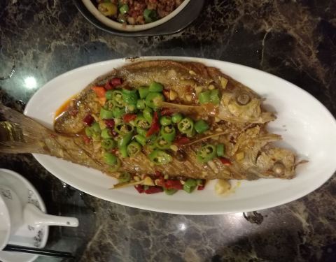 位置就在万松园美食街,旁边有个果唯一水果店,很好找,那天晚上实在太饿了,又有些晚,想着赶紧找个店吃完就走,一进去服务员就带我们坐下了,菜单给我们点菜,菜上的还蛮快哦,因为就两个人,那天晚上剩下的鸡都是很大的了,好可惜,没点这个招牌菜,点了个豆瓣鲫鱼和青菜还有花菜吧,鲫鱼味道还不错哦,应该也比较清新,吃起来挺甜的,青菜也爽口呢,味道不错,就是遗憾没点鸡,下次有时间去品尝哦。那天太饿没拍菜的照片(-᷅_-᷄)。