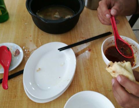 这叫盆干碗净,第一次吃,味道不错!晚上继续吧!
