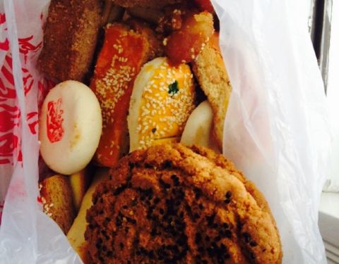 在日月路市场里,靠中间位置的一个摊位,点心种类好多,是清真的,老板娘说都是自己做的,不但有点心还有面包,蛋糕,只是没有见到烤制工作,可能没赶上吧。买了20块钱的点心,很有味儿,最大特点是不是那么甜,也没有什么香精香料的味道,还不错。但是我妈非常反对在他家买点心,说看着并不是那么新鲜,没有尽产尽销,担心买的不是新鲜出炉的,事后我在晚上收摊前又去了一次,果然不是尽产尽销,买的点心估计不是新鲜出炉的,一下子浇灭了我对他家点心的好客。