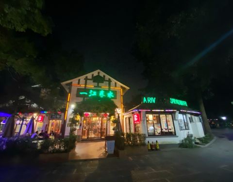 一江春水有自己的停车场,可以停十辆左右。不过在去它家时根据导航走到了它家的后门。店铺挺大,一幢独门独院的农家院落,在三台山这样的环境,实属珍贵。它家的菜味道不错,几个招牌特色菜很好吃,尤其是椒麻澳牛,是把牛舌做成川味十足的一道菜肴,牛舌入口有嚼劲,略带麻辣,调动人的食欲大开!唯一美中不足的就是店铺内的装修有些Low,希望抽空调整一下风格,更显档次和品味!