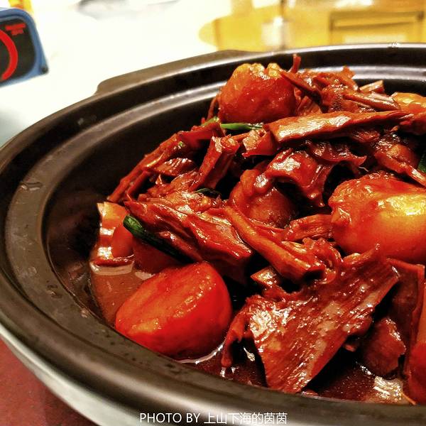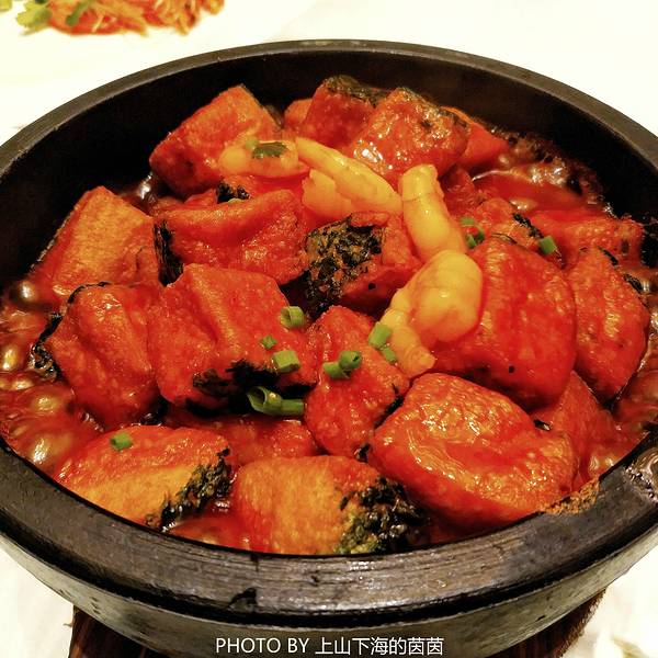 - 松菇豆腐吃上去糯糯的,面皮是煎过的,说不好是什么口味,但蛮入味的