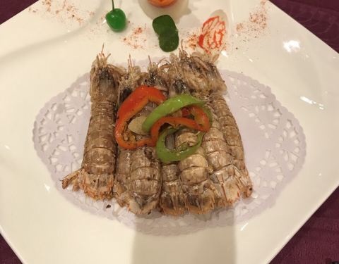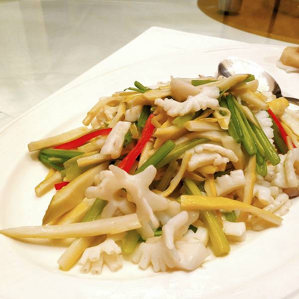 环境很好。服务生也态度蛮好。我们来的比较早人不多。明天准备继续来吃a套餐。看网友攻略都蛮好的,一般吃套餐的人比较多。听到隔壁桌也在问套餐情况。菜来了。量好大。今天肯定吃不完的。先来了笋。爽口的。很嫩。虾也鲜美。哈哈哈。灵。