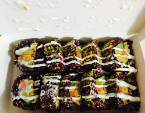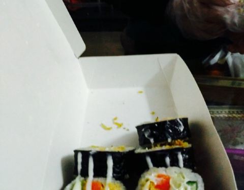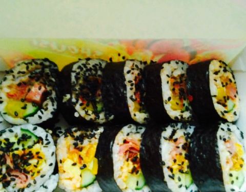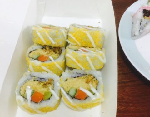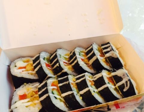 离单位很近,她们家已外卖为主,两个包寿司的员工。手脚很利索。寿司都是现做的,寿司有好几种形状。我是晚上买,放了冰箱一晚,早晨吃的,觉得米饭口感稍硬,估计是放冰箱的缘故。我感觉外面裹了紫菜的口感好点。有的寿司里有酸黄瓜,还挺好吃的。价位也公道,生意很热闹。