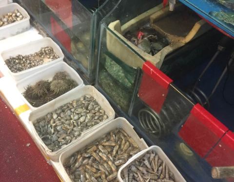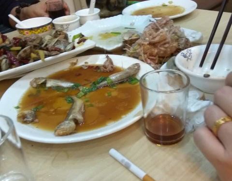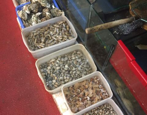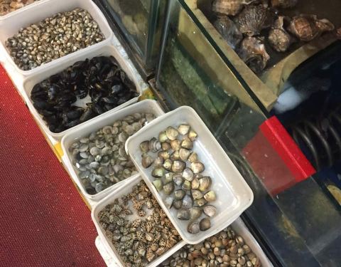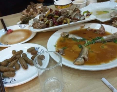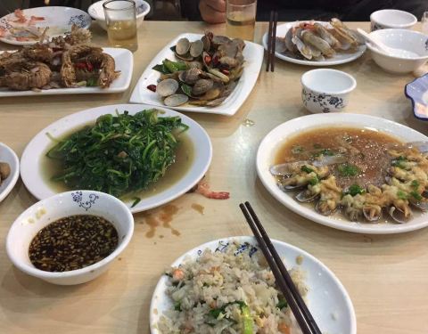 老菜市,同庆楼旁边,门头不大,夜宵生意火爆。反正大排档的装潢,五星级的味道。海鲜都很清新,品类也好多,皮皮虾椒盐的,份量一般。三文鱼,螺肉,雪蛤真的超级新鲜,蘸点芥末,超级赞。生蚝很大,蒜蓉放的多,闻起来就香,超级棒。蒸的那个鱼刺不多,很嫩。