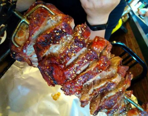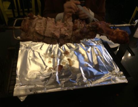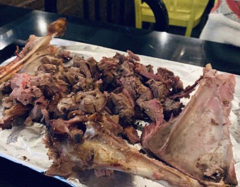 ...不错,烧烤的很入味,皮焦肉嫩的,滋滋冒油,吃着烤着最好吃,盐水花生和酸梅汤配合烤羊腿非常的到位