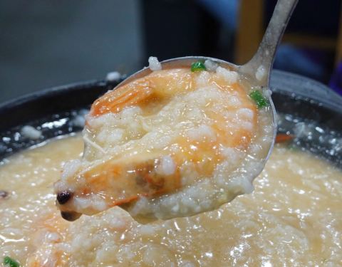 生蚝16一个,烤的比较透。花蛤比较大。鲍鱼螺非常棒。但是!不辣!!!!!我这种可以直接喝辣椒油的人,感觉很难受…海鲜粥卖完了…很伤心。