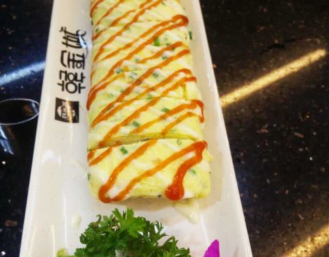 蛋卷, 柠檬茶 ,石锅拌饭,海鲜豆腐汤啦啦啦啦