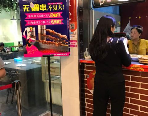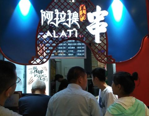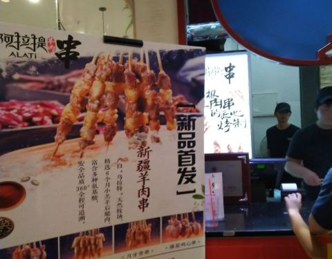 这家阿拉提羊肉串大王连锁品牌分店位于苏州工业园区湖东的永旺梦乐城1楼美食街