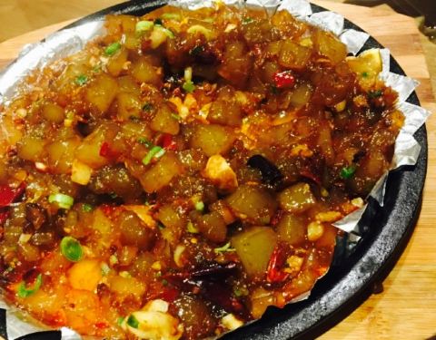来苏州旅游的第二顿晚饭,因为走的太累了,晚上回宾馆都不想出去了,搜了附近外卖的店,选择了华侨饭店中餐厅。点了当地风味的菜品,荷塘小炒,桂花豆沙圆子,苏式槽溜鱼片,外婆糍饭糕。糍饭糕就是油炸年糕,槽...