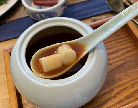 久闻禅悦大名,还是最近才来这家打卡的。素食吃过几家都还是比较喜欢,貌似这里的风格又有不同,稍微高端一些,所以价格也就相对贵一些。 团购了套餐和侦探朋友们一起过来,坐了一个8人的包间。菜品有位菜也有分享菜,位菜每道都显得精致,分享菜口味就偏家常。 其实看了菜单,加上小妹儿上菜都要报一下菜名有些都还是会对不上号,所以名字也只有暗到写了。 【六味之苦——三年陈皮普洱茶】(餐前茶)喝茶养生,还好的就是这个茶喝了晚上也没有睡不戳觉,这是最重要的。 【六味之淡——醍醐三味】(开胃菜)豆干,金桔,萝卜。豆干和萝卜都很下饭的,金桔也不晓得是怎么处理的,不会酸反而甜。 【六味之甘——桑葚无纯】(开胃酒)这个我确实有点不习惯,总觉得有股药味。 【六味之辛——捞福】(凉菜)很多可以生食得蔬菜,大家一起“捞”起来,混合之后拌上油辣椒不错呢,主要是寓意很好。 【六味之甘——乌梅饮】好像是餐中一杯像酸梅汤的饮品。反正我觉得比餐前酒好喝的。 【六味之辛——鸿运当头】这个真的就是畅销款呀,里面的豆腐和鹌鹑蛋简直吃不够,特别喜欢那个豆腐。下面垫底的是年糕,这么扎实的菜,我们还加了几次! 【六味之咸——自在】也忘了,不晓得是不是那个西班牙薄饼,很扎实,吃了一块就半饱了。 【六味之咸——心之所至】(主菜)用猴头菇做的,下面有小堆的山药泥,味道清淡,猴头菇很香。 【六味之酸——大悟无言】(这个确实忘了)应该是泡椒炒芹菜木耳吧。 【六味之咸——羊肚菌五行养生锅】(主菜)汤底很鲜,煮素菜安逸,最经典的是那个有菌子的蘸酱,太好吃了,买了一瓶回家。 【六味之咸——功德之路】(主食)干香油润的炒饭,咸淡适中,搭配豆豉萝卜干可以刨几碗。 【六味之甘——清静无为】(甜品)所有小伙伴都表示吃不惯,me too 。主要就是里面有泡菜的味道,奇奇怪怪的。 总的来说都还是很满意的,特别我们那个包间服务员小妹态度只好,点赞。
