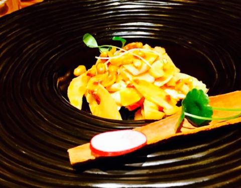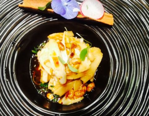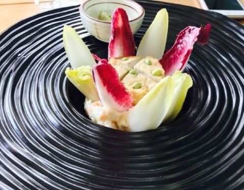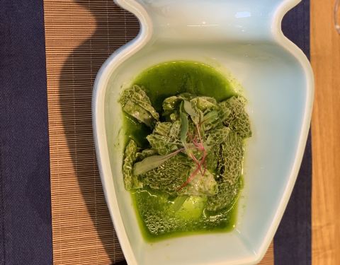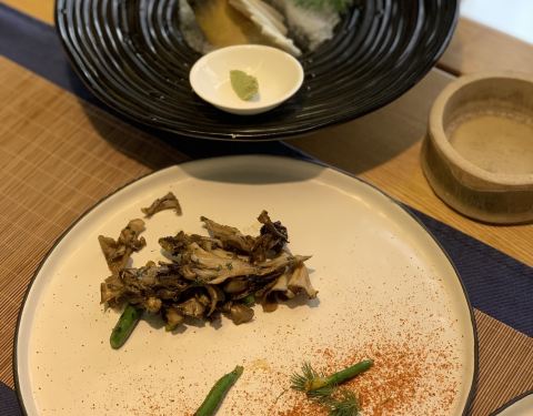一个朋友是常客有券就招呼我来吃了。位置不太好找有点隐蔽,在万丽酒店旁边一个小门进去,电梯口站着他家员工帮你刷电梯卡。装修很棒。说实话之前吃过的素餐只有一叶一世界,相比这里真的好太多,可惜我没拍。但隔断做的不够好,因为后面隔壁桌坐了一家人就特别吵了。菜品是定好了的,每一段时间一个菜单那样。有点像私房菜。坐下后很快就开始上菜了,好评。整个用餐吃了大约有10道菜吧,本人认为做的有点像西餐,份量不多但很精美。并且有一点一定要说,就是他家你会忘记自己在吃素食,不是那种刻意突出素食的样子。吃完我就感觉吃了好丰盛的一顿饭哈哈????。说实话菜名我倒是都不记得了,反正推荐体验。